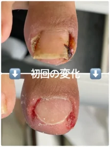 『1番ヒドい巻き爪の状態の方でも6・7回の巻き爪施術で根本から平らな爪へ導ける事を目指し』