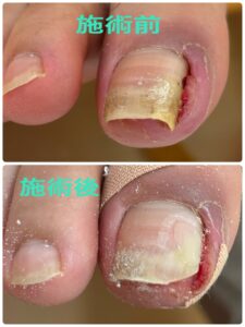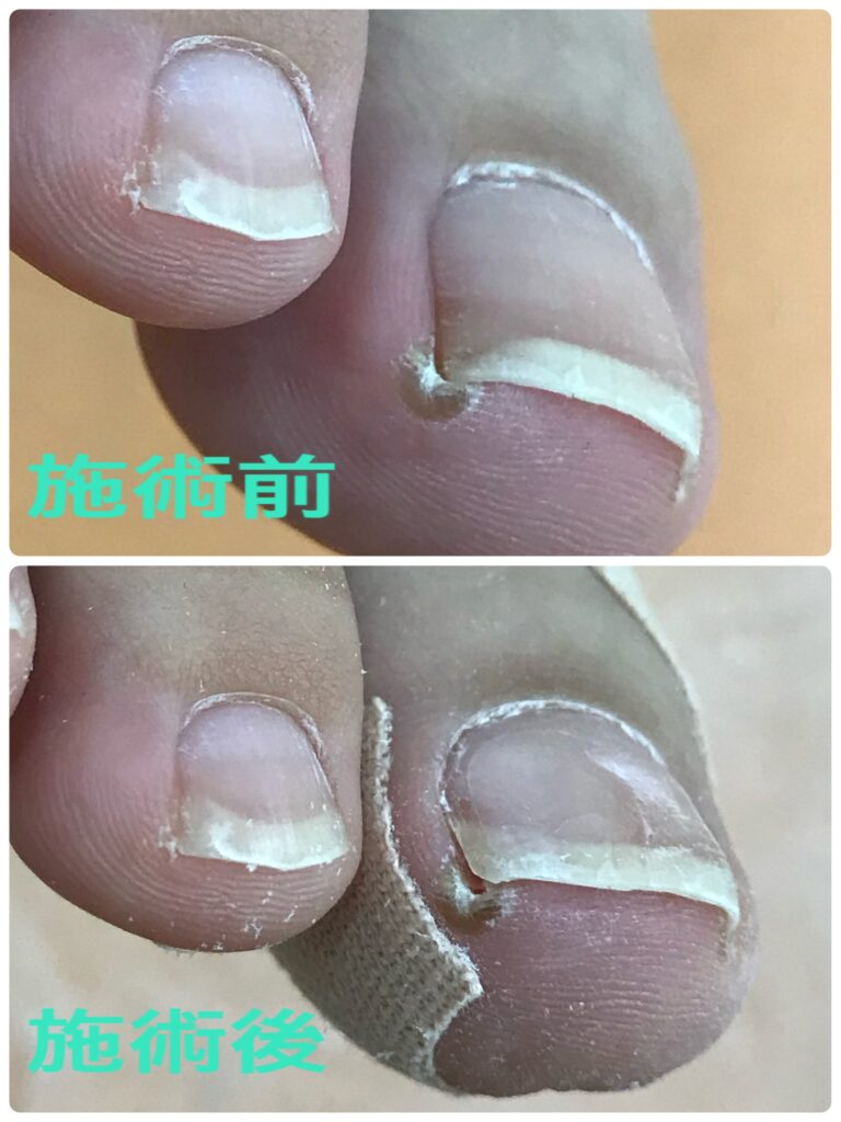 • A1: 多くの患者さんが、施術直後から「痛くない!」と驚かれます。爪の端を持ち上げることで、皮膚への食い込みを即座に解消するためです。