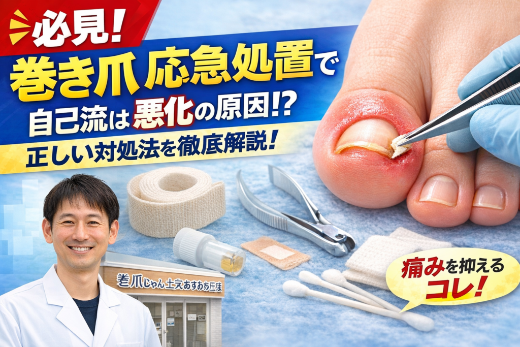著者:巻き爪じゅん土気あすみが丘店伊東正之 【】 【】 巻き爪の痛みは、ある日突然強くなることがあります。 「今すぐどうにかしたい」「病院や専門店に行く前に応急処置だけでも知りたい」 このように巻き爪 応急処置を探している患者さんは非常に多い... -